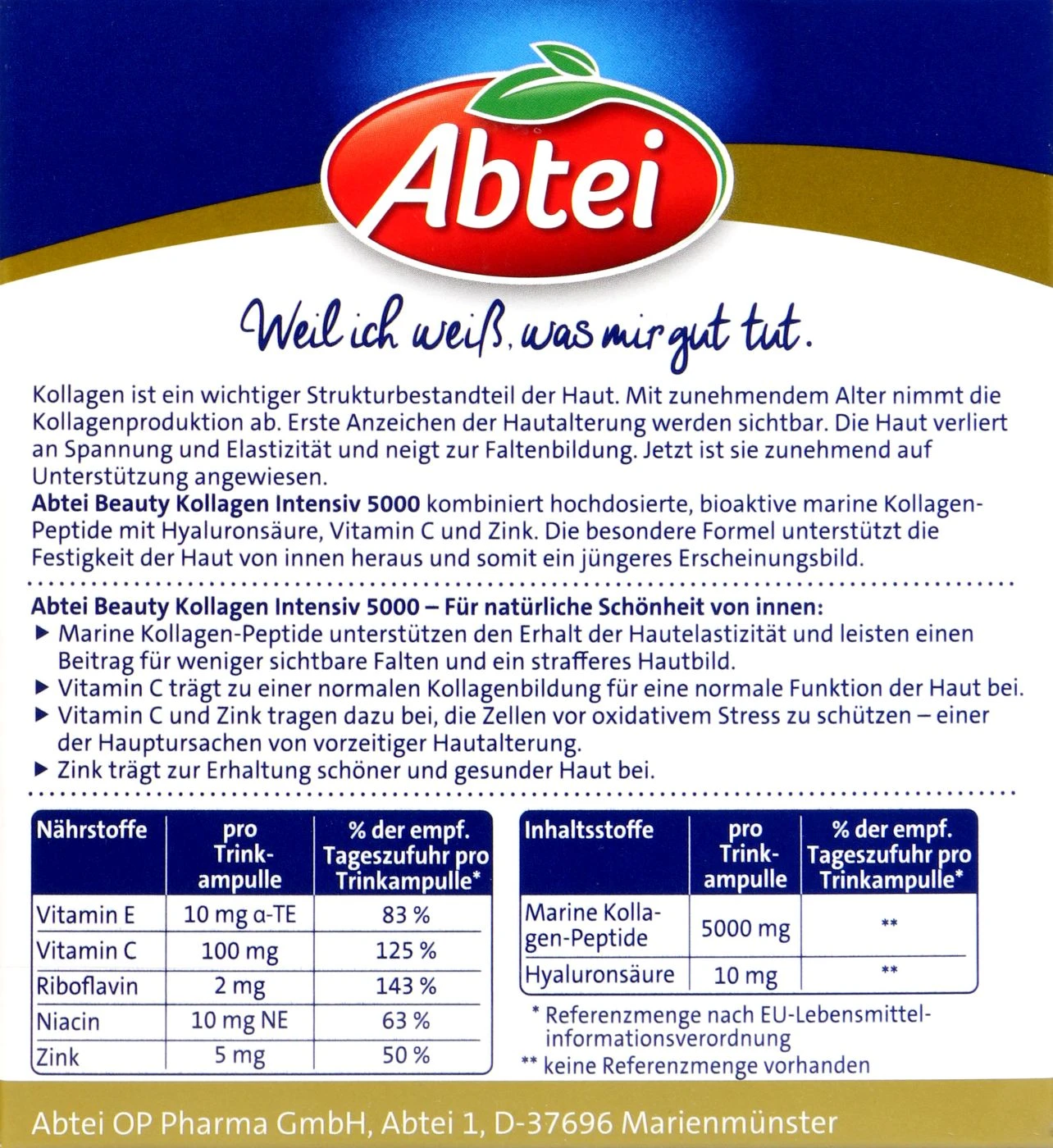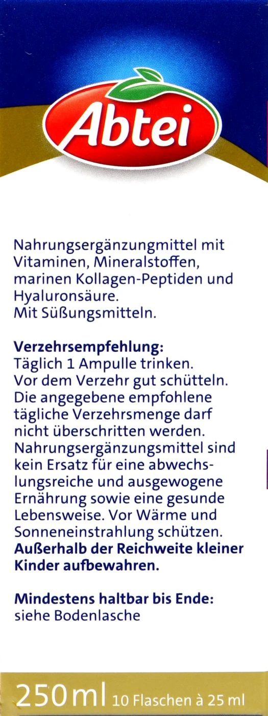 Schreibe die erste Rezension für „Abtei Beauty Kollagen Intensiv 5000 Trinkampullen – 25ml X 10 Stück“ Antwort abbrechen