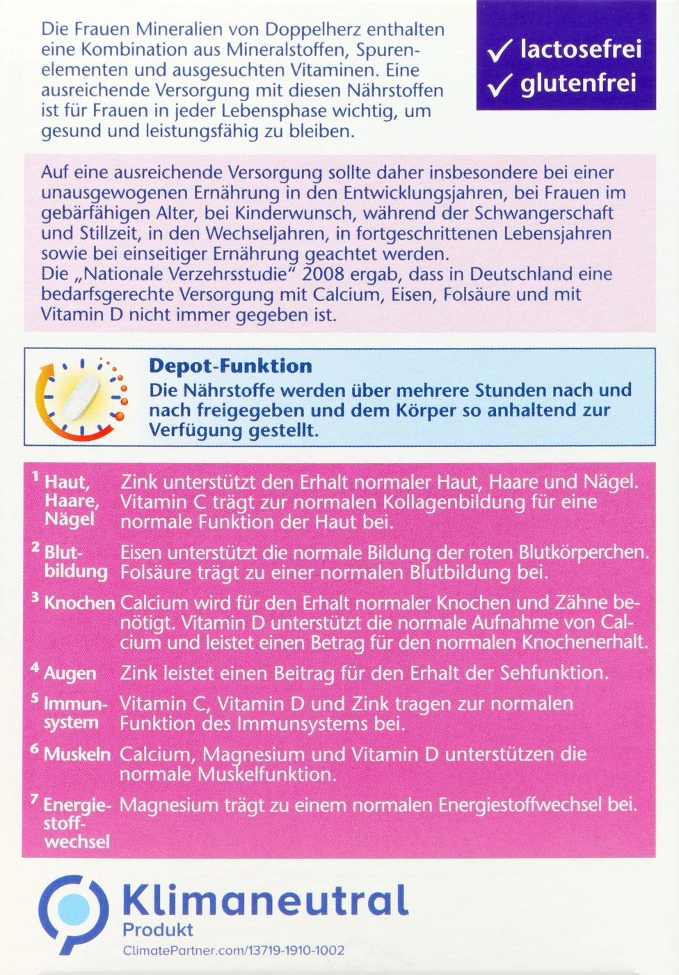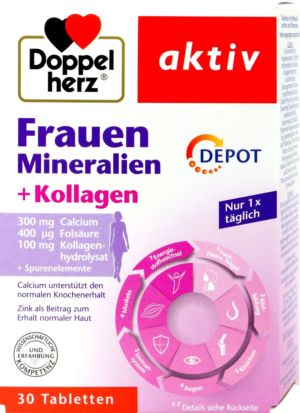 Doppelherz Frauen Mineralien Depot ist ein Nahrungsergänzungsmittel mit Calcium, Folsäure, Jod,