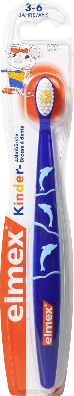 Elmex Kinder-Zahnbürste Weich ist für Kinder von 3-6 Jahren geeignet, damit ihre Zähne schon früh ordentlich gepflegt werden. Die Zahnbürste hat einen extra weichen Bürstenkopf und einen sehr bequemen Bürstengriff. Die kleine Bürste ermöglicht eine gezielte und schonende Reinigung der Zähne und des Zahnfleisches. Gründliches Putzen mit der Zahnbürste beugt Karies und andere Zahnkrankheiten vor und sorgt für gesunde Zähne.