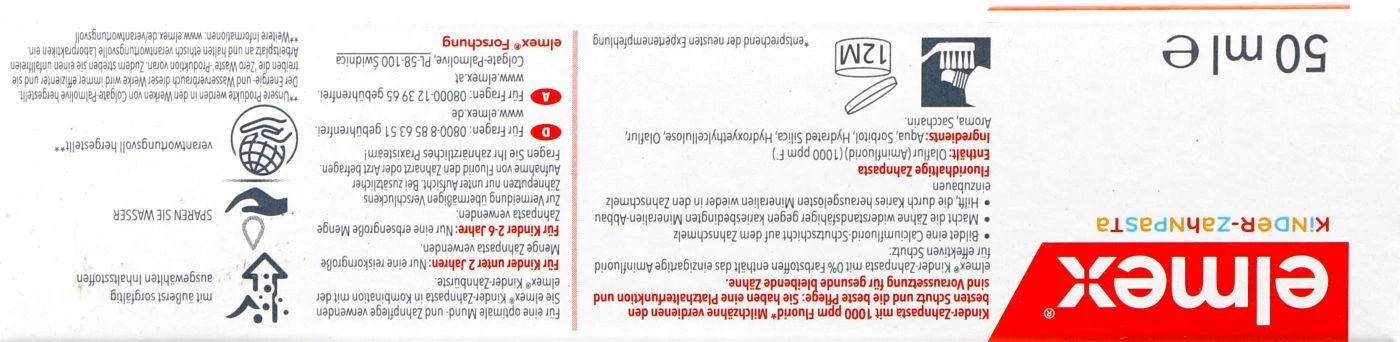 Elmex Kinder-Zahnpasta ist für Kinder mit ersten bleibenden Zähnen bis zum 6. Lebensjahr. Die Zahnpasta schützt wirksam vor Karies. Sie enthält Aminfluorid und stärkt die Zähne für deren tägliche Herausforderungen. Regelmäßiges Zähneputzen erhöht die Wirksamkeit.