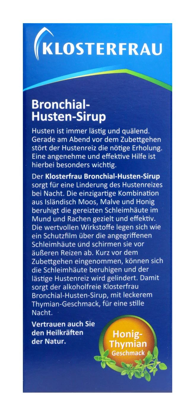 Klosterfrau Bronchial Husten-Sirup ist ein Sirup auf pflanzlicher Basis mit Honig-Thymian-