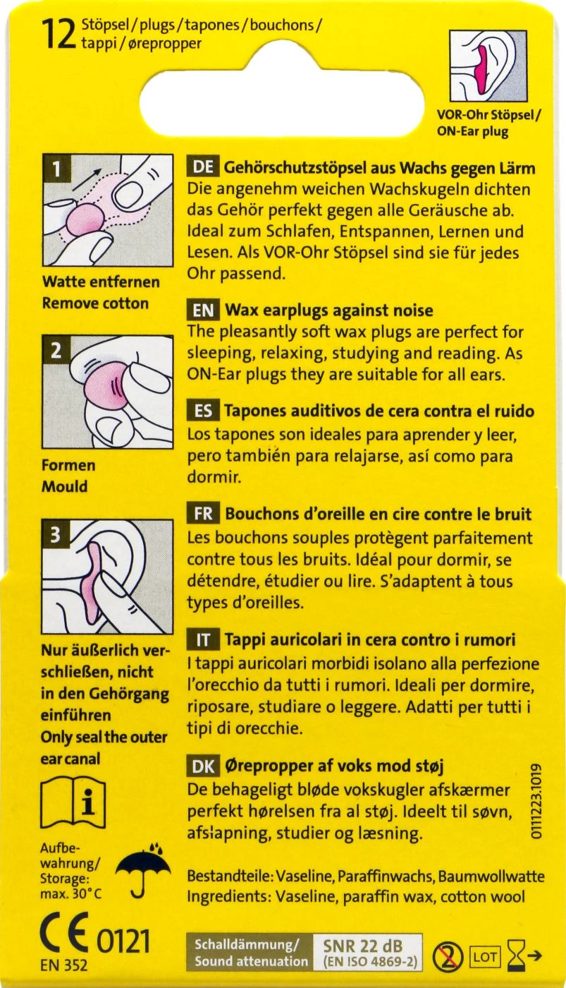 Die kleinen Kügelchen bestehen aus Wachs und funktionieren als Vor-Ohr-Stöpsel. Das bedeutet sie passen in jedes Ohr perfekt hinein und du musst sie nicht so tief, wie herkömmliche Ohrenstöpsel, hineindrücken.
