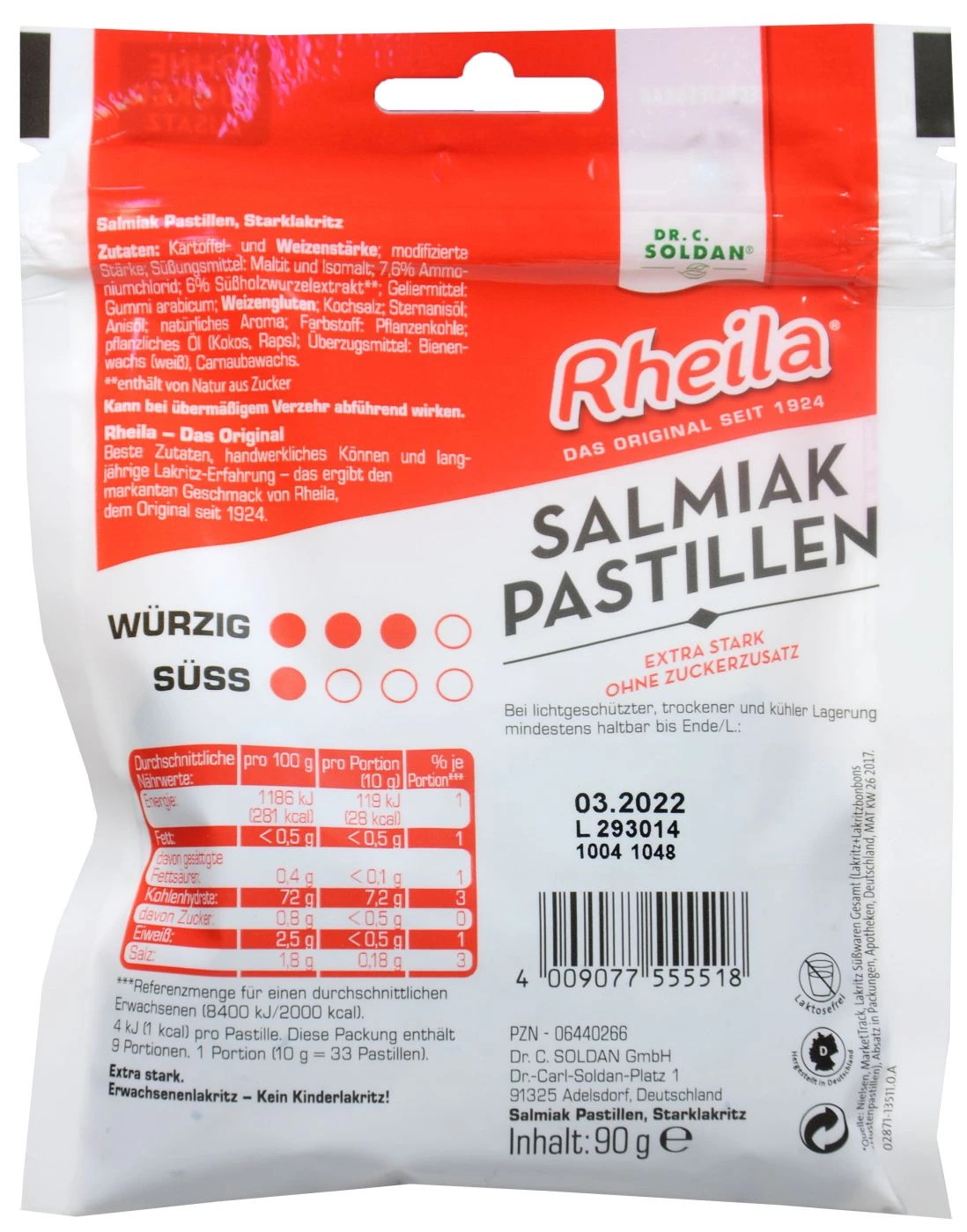 Rheila Salmiak Pastillen sind rautenförmige Lakritzstückchen mit extra starkem und aromatischem