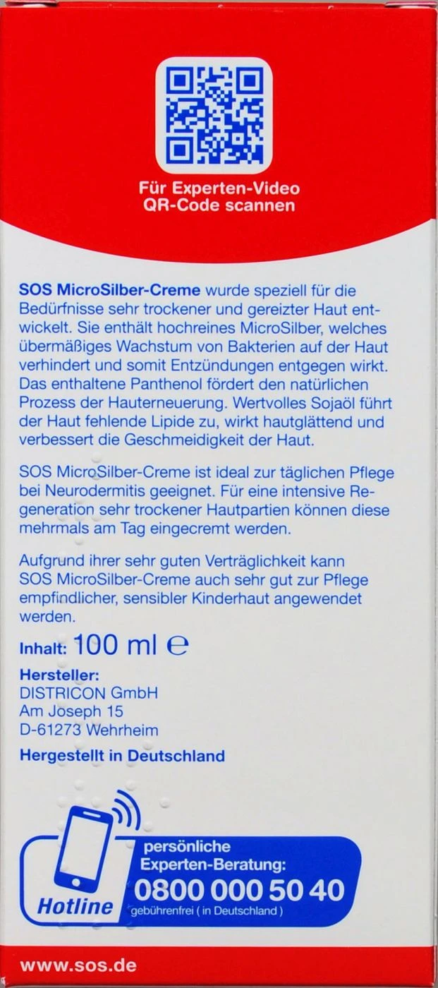 SOS Micro Silber-Creme ist eine medizinische Pflege bei trockener und gereizter Haut, sowie bei Neurodermitis. Die Creme lindert schnell den Juckreiz und beugt Entzündungen vor. Durch die wertvollen Inhaltsstoffe ist die Creme auch für Kleinkinder gut geeignet. Sie ist ohne Parfüm, Farbstoffe und PEG-Emulgatoren.