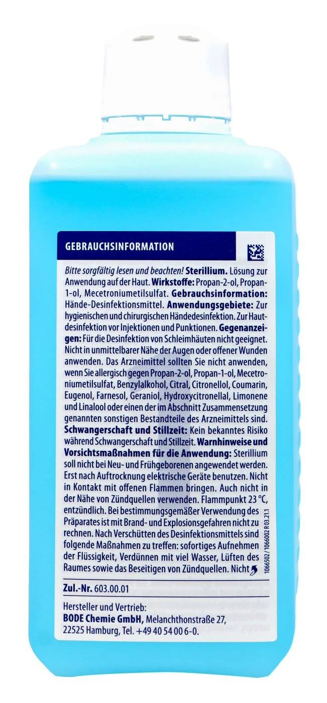 Sterilium Hände-Desinfektion ist ein Desinfektionsmittel. Das Produkt eignet sich zur hygienischen und chirurgischen Händedesinfektion. Außerem kann es für die Hautdesinfektion von Injektionen und Punktionen verwendet werden.
